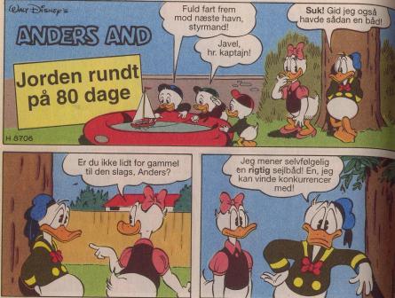 indeholder en Anders And historie med titlen "Jorden rundt på 80