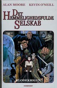 Serien er fortalt af Alan Moore og tegnet af Kevin O'Neill.![]() Alan Moore, f. 1953 i England, forfatter, mystiker mm. Af andre eksempler på cross over-teknikken er den såkaldte Wold Newton-teori, introduceret af forfatteren Philip José Farmer i bøgerne Doc Savage: His Apocalyptic Life (1975) og Tarzan Alive (1976). Wold Newton-teorien hævder, at talrige litterære helte og skurke i virkeligheden nedstammer fra én og samme gruppering af mennesker. Disse var i året 1795 vidner til (det historisk korrekte) meteor-nedslag i Wold Newton i England og blev dermed udsat for en radioaktiv bestråling, der skulle have bevirket, at deres efterkommere blev i besiddelse af ekstraordinær styrke og / eller intelligens. Ifølge Farmer tæller disse efterkommere så prominente fiktions-navne som Den røde pimpernel, Holmes og Moriarty, Phileas Fogg, Allan Quatermain, Tarzan, Fu Manchu og Nayland Smith, The Shadow, Doc Savage, Philip Marlowe og James Bond! I en Jules Vernesammenhæng er i dette univers udgivet Phileas Foggs hemmelige dagbog, der findes i en svensk udgave. ![]() I Det hemmelige selskab optræder kaptajn Nemo som et af Det Hemmelige Selskabs medlemmer, men overalt er der spor af Jules Vernes romaner: Robur nævnes, balonen fra Fem Uger benytttes, og endog projektilet fra Rejsen til Månen dukker op. Desuden spiller Allan Quatermain en vigtig rolle, hvorfor serien alene af denne grund danner en bro mellem Vernes og Haggard forfatterskaber. Alan Moore er en af tidens mest berømmede tegneserieforfattere. Af hans øvrige serier bør fremhæves Promethea i 5 bind påbegyndt i 1999. samt V for Vendetta og Watchmen, der begge er udsendt som meget interessante film. Også første bind af Det Hemmelige selskab er filmatiseret i en ikke helt tilfredsstillende film med bl.a. Sean Connery. Om den meget indviklede handling i Det Hemmelighedsfulde selskab læses bedst på forlagets hjemmeside: