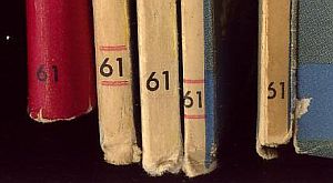 1950 heftet: ![]() 1948 heftet med nr. "61" nederst på ryg.