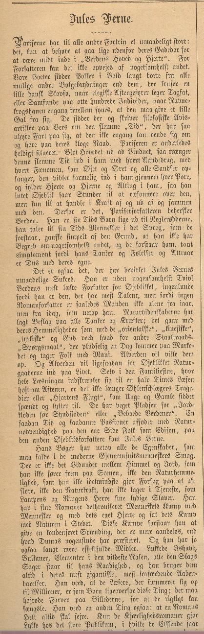 Tidsskriftet "Nutiden" fra 1879, søndag d. 6. april.Her blev bragt et stort portræt af Jules Verne - og på næste side var der en omtale af forfatteren.
