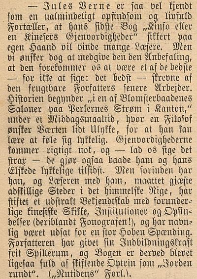 | Omtale af "Kinfo" i "Nutiden". I "Nutiden" fra 21/12 1879 bringes omtale og reklame for "Kinfo - eller en