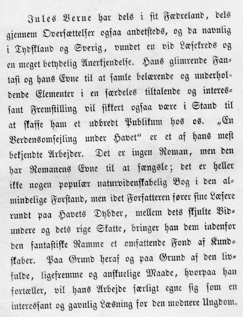 et omfattende fond af kundskaber. Forord til Jules Vernes første udgivelse i Danmark i bogform: