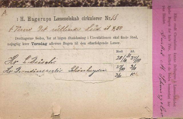 Bogen indeholder foruden den originale forsidetegning også en indskrift, der viser at den har cirkuleret i en læsekreds: