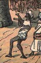 ![]() At der er tale om dygtigt udførte kopier ses ved sammenligning af følgende detalje. Det er den danske version til venstre. ![]() Der er dog også forsider, hvor den danske er helt forskellige fra den tyske. Om lithografer, som har fremstillet trykkene af forsidetegningerne: På de 2 heftede bind af Mindre Fortællinger er nederst trykt: Th. Berghs Lith. Inst. Der er tale om litografen Theodor Bergh. I Weilbachs Kunstnerleksikon skrives bl.a om Bergh: