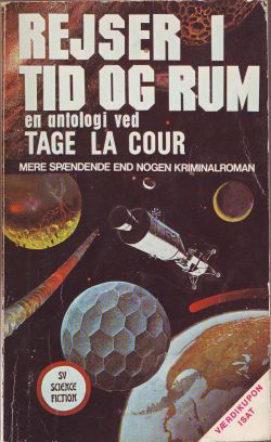 ![]() Den indbundne udgave fra ryggen: ![]() Rejser i tid og rum, en antologi ved Tage la Cour. Stig Vendelkærs Forlag 1973. 188 sider. Samling af artikler om science fiction. Heri Kingsley Amis: Grundlæggeren (om Verne og især 5 uger i ballon). Oprindelig "Founding father" , London. 1970. Tage la Cour: Rejsen til Månen fra Lukianos til H. C. Wells. (er også medtaget i la Coursamlingen "Rejsen til månen", se brug og misbrug af Verne. ![]() |