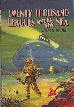 "20,000 leagues under the sea" (VE6: En verdensomsejling under havet), . Det er et rødt kartonbind med smudsomslaget bevaret.