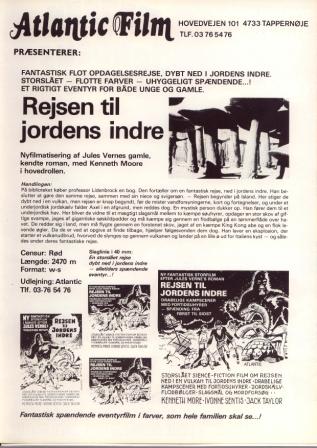 ![]() Længde 90 minutter Medv.: Kenneth More som Lindenbrook, Ivonne Sentis og Jack Taylor. Indgår i Filmbox 1 Bagsiden af dansk miniplakat: