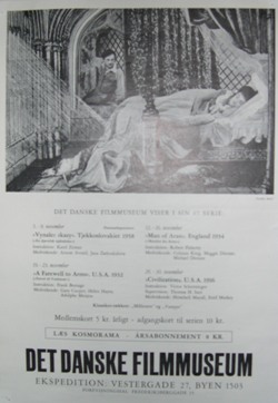 B. Filmplakaten fra Det danske Filmmuseum med Danmarkspremieren på Karel Zemans "Vynalez zkazy" ("En djævelsk opfindelse") , Tjekkoslovakiet 1958. Plakaten reklamerer for 4 film, men billedet er fra Jules Verne filmen - et meget fint s/h billede.