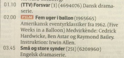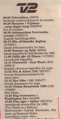 B. Fjernsynsprogram fra 2. juledag 1999, hvor filmen blev vist på TV 2. Også vist på dansk TV2 den 23. juni 2007 kl. 2:00.