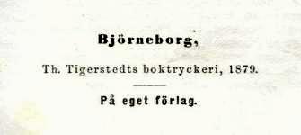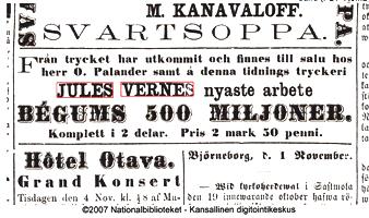 "Bégums 500 Miljoner", 2 bind, Th. Tigerstedts boktryckeri, Björneborg, 1879, "På eget förlag.