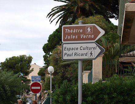 i den lille afgangshal i Nice med det velkendte navn. ![]() ![]() Pladsen for foden af trappen og kabelbanen til Sacre Coeur-kirken på toppen af Montmartre. Pladsen er opkaldt efter anarkisten Louise Michel, omtalt mere indgående i Verne-selskabets nyhedsbrev nr. 5 ![]() Et indtryk fra Marché aux livres ved Porte de Vanves: De fine gamle Hetzel-udgaver beundres. ![]() Teaterstykket Le tour de Monde en 80 jours spilles stadig! nu på 6. sæson. Det må siges at være en succés. Forestillingen er også udkommet på DVD. Le Café de la gare. Flere steder i Bandol i Sydfrankrig viser skilte hen til Theatre Jules Verne. Det viser sig at være indrettet i byens gamle skole, der sammen med biblioteket udgør et kulturcenter. Den Paul Ricard, der omtales, er den mand, der havde tjent sig en milliardformue på fabrikation af den berømte Pastis Ricard. Han ejede en ø ud for Bandol og har åbenbart financieret mange ting i byen, herunder Theatre Jules Verne. ![]() ![]() ![]() Fra Lejf: Netop hjemkommet fra en uge på Kosika fandt jeg dette citat fra "Matthias Sandorf: "På Korsika er der ikke lang vej fra modvilje til had, og fra had til vold er der endnu kortere."Der er heldigvis ganske fredeligt nu om dage. Jeg fik også et billede af et krydstogtsskib i havnen i Calvi. Rederiet kender vist ikke sin Jules Verne. ![]() Katedralen i Amiens – Katedralen