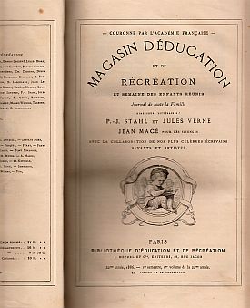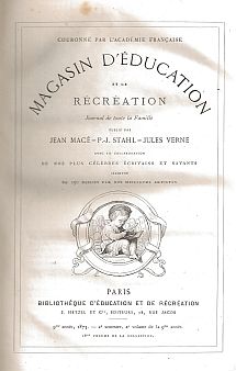 Les Grans Navigateurs du XVIIIe siecle, 1879, med shirtingen "à la sphere armillaire ptolémaíque" i rød. . ![]() . ![]() ![]() . Magasin D'Education et de Récréation. Bind 5. 1866-67, 1. halvår.Med: "Les Enfants du Capitaine Grant" 1. del. Illustrationer af Riou. 380