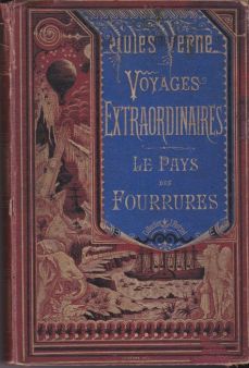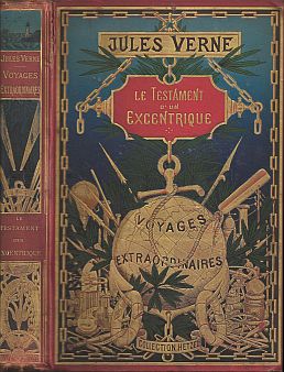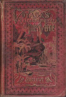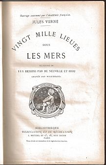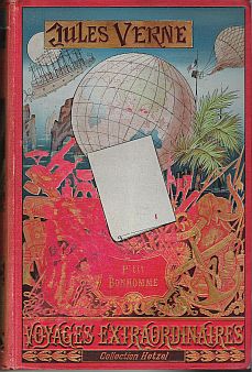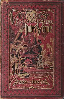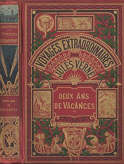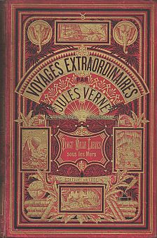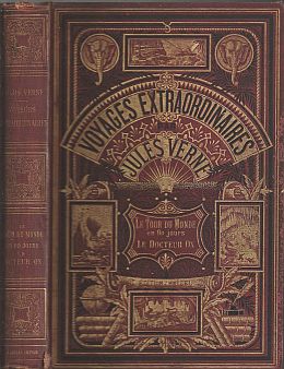 tryk i sort og guld af typen "A la Banniere". Le Pays de Fourrures. Hetzel, ukendt årstal, Ret slidt bind, der dog hænger sammen efter en nødtørftig reparation. . ![]() Aux deux Elephants. VE 6 "Vingt-Mille Lieues sous les Mers". J. Hetzel et Cie, 18, Rue Jacob, Paris. U.år. . ![]() 111 illustrationer af Neuville & Riou. 434 s. + 2 s. indh. + catalogue EL (der daterer indbindingen til 1888). Indbindingen er rød komponeret helshirting med tryk i sort og guld af typen "Aux deus Élephants" Lenègre type 3. (Beskrevet i Jauzac s. 181) ![]() VE 11 "Le Tour du Monde en 80 Jours" og "Le DSocteur Ox" med "Maitre