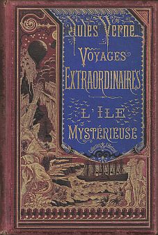 sort og guld af typen "A la banniere". ![]() VE 12 "L´Île Mystérieuse" 1-3. J. Hetzel et Cie, 18, Rue Jacob, Paris. (1. triplebindsudg.?), (1875), 154 illustrationer af Férat, 616 s. +