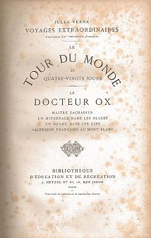VE 11A "Le Docteur Ox" og VE 11 "Le Tour du Monde en 80 Jours". J. Hetzel et Cie, Libraires-Editeurs. 18, Rue Jacob, 18, (1874).