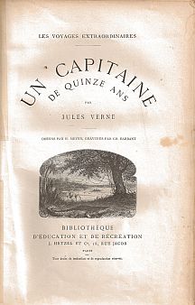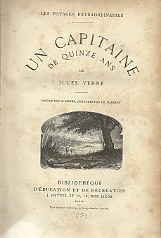Portrait collé"Au Globe doré ![]() VE 17 "Un Capitaine de Quinze Ans". J. Hetzel et Cie, 18, Rue Jacob, Paris.(1898-99). Illustrationer af H. Meyer og 6 farveillustrationer. 376