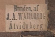om halsen. Bogbindermrk.: "Bunden af J. A. Wahlberg Åtvidaberg". Bindet ser ud