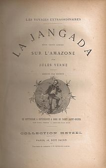 af typen "Aux deux Elephants". VE 20 "La Maison a Vapeur". J. Hetzel et Cie, 18 Rue Jacob, Paris. U. år. . ![]() . Indbindingen er rød komponeret helshirting med tryk i sort og guld af typen "Aux deus Élephants". (Beskrevet i Jauzac s. 226) . Aux Portrait collé og Aux Portrait imprimé ![]() VE 17 "Un Capitaine de Quinze Ans. J. Hetzel et Cie, 18, Rue Jacob, Paris. Illustrationer af H. Meyer. 376 s.