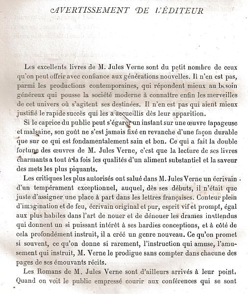 J. Hetzel, 18, Rue Jacob, Paris. (1868). Illustrationer af Clerget og Riou. 768 s. Tryk: Ch. Lahure, Rue de Fleurus, 9, à Paris. (Nr. 9162) Indbinding: Rød helshirting med guldtryk på ryg og blindtrykte