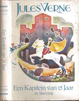 . 17. Kaptajn på 15 år (XVI)Een Kapitein van 15 Jaar In Slavernij" + "Een Overwintering in het Ijs", Serien "Wonderreizen", 4.oplag Elsevier 1921. Med originale franske illustrationer. 250 s. + 1 s. indh. Trykkeri ikke angivet. Blå komponeret helshirting med tryk i sort og guld - med originalt smudsomslag.