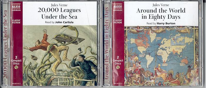 Lydbog på engelsk: ![]() To lydbøger på CD fra det britiske pladefirma Naxos. De har hver en spilletid på ca. 2 timer 30 minutter, så mon ikke de er en del forkortede? (Lejf sep. 2010) Lydbøger på tysk. 1) Hørespil: Das Karpathenschloss. 2) Hørespil: 20.000 Meilen unter dem Meer 3) Sange fra