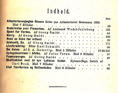 I 1883 (årgang II) har man ”Sydpolarlandets Opdagelse”. I 1886 (årgang V) er der "Opdagelsesreiser i Nordpolaregnene".I 1887 (årgang VI) er der 'Oppdagelsesreiser i Afrika'
