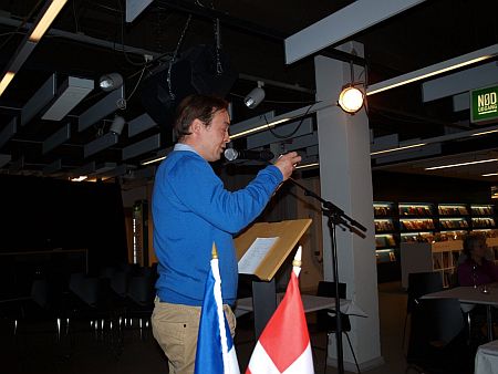 Thomsen, der her ses på forlaget i Møllegade, ved udgivelsen af Wilhelm Storitz' Hemmelighed i 2013.....