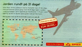 Frode Kristoffersen. "Dansk Phileas Fogg"!. Se og hør nr. 15, 1. april 1959 bringer en omtale af et væddemål en ung journalist har indgået. Der er tale om ingen ringere end den senere så kendte TV-mand Frode Kristoffersen, der blev Europaparlamentsmedlem for de konservative. Det fremgår i øvrigt af lidt søgning på nettet, at han led et forsmædeligt nederlag. Turen tog ham 138 dage, fire timer og 11 minutter, men der var nu osse vanskelige betingelser i væddemålet. ![]() Efter hjemkomsten skrev Frode en bog::