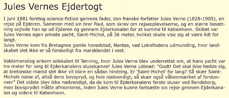 "Ejderen snor sig i utallige vindinger igennem det flade landskab. Landet er fladt med frodigt og grønt. Af vegetationens pragt i disse nordlige lande kan man ikke danne sig et indtryk, medmindre man selv har set det." ![]() Så der er stadig mulighed for at følge Jules Verne lidt tættere end i