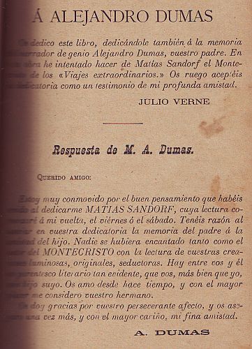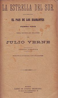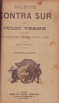 en tømmerflåde oven på et vulkanudbrud.![]() Det tykke bind gør det vanskeligt at vise de midterste hefter, men indholdet er: La estrella del sur 1 +2 , 63 + 63 sider Matias sandorf 1 + 2 + 3 + 4 + 5 , 64 + 64 + 64 + 64 + ? (de sidste sider mangler) Robur el conquistador 1 + 2, 63 + 64 sider Un billete de loteria med Frritt-Flacc 1 + 2, 63 + 51 sider Norte contra sur 1 + 2 + 3 + 4, 63 + 64 + 63 + 63 sider ialt 15 hefter udgivet i Madrid af Saenz de Jubera, Hermanos, 16. Calle de Campomanes , 10. Hefterne er rigt forsynes med de originale franske tegninger og romanerne er trykt i spalteformat. I Matias Sandorf er medtaget Vernes tilegnelse af værker til Dumas den ældre og svaret fra Dumas Fils. ![]() ![]() ![]() ![]() . ![]() . Viaje al centro de la tierre + Un drama en México + Diez horas de caza udgivet