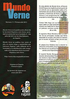 Atte. a Ud. Tidsskriftet Mundo Verne, nr. 11. Dette nummer har undertitlen "Jules Verne eller den vidunderlige geograf". Det er et meget smukt farvetrykt hæfte på 48 sider med en række interessante artikelbidrag. Meget passende har man anbragt Fyrtårnet ved Verdens ende på for- og bagside. ![]() |