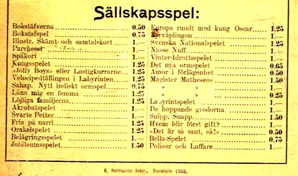Der er sikkert blevet spillet mange Johnsonspel omkring år 1900 rundt omkring i de svenske hjem. Endnu en af de mange indianerromaner bind 14: Trohjerta eller Ödemarkens son af Aimard, hvoraf der findes en del romaner i oversigten: