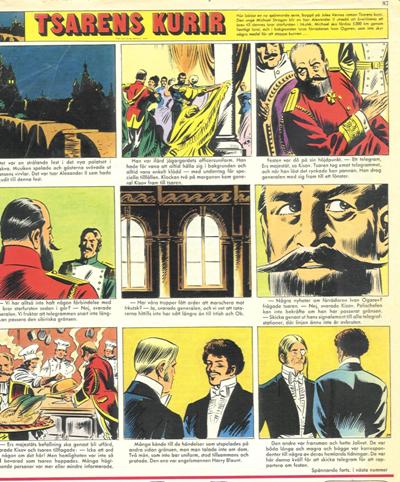 1. Hemmets Veckotidning 1948 + 1976. I Hemmets Veckotidning fanns Tsarens kurir som tecknad serie i numren 33/1976 till och med nr 24/1977. Inga uppgifter om tecknare eller liknande finns. Mitt ex av serien består av utrivna sidor med serien. På en lös lapp finns en uppgift att serien skulle ha tryckts en gång tidigare i Hemmets Veckotidning, åren 1948-49. Kan detta vara riktigt ? (Lars-E)