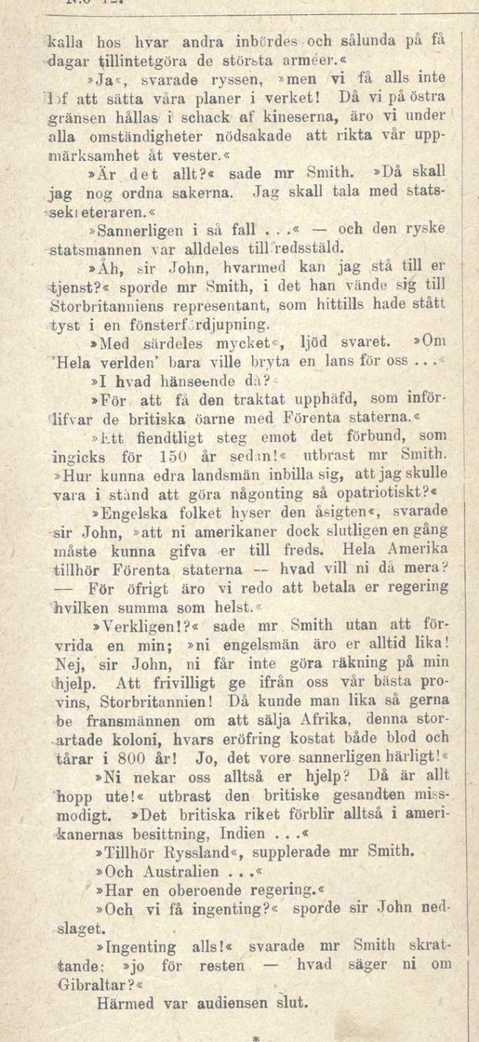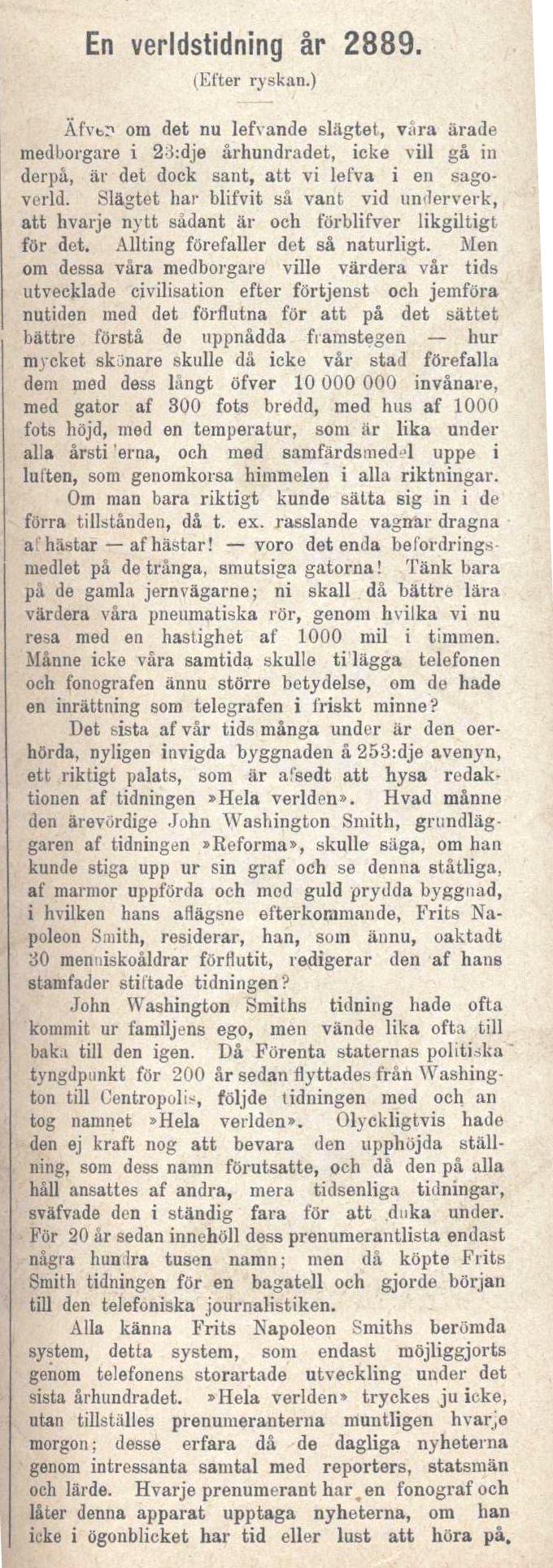 Kopi fra Illustrerad Familj-Journal nr 41-42, 1889. På sidorna 324-325 respektive 334-335. Se den tilsvarende danske version: dansk 2889