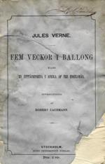 | Jules Verne-udgaver fra Hugo Petterssons förlag: 1. En världsomsegling under hafvet. 2 volymer; 237 + 286 s. 2:a upplagan (enl. KB). Petterssons (förlag). Tryckt i Stockholm. 1872. 2. Huset Playfair & C:o eller En bomullslast och ett hjärta. Hugo Petterssons förlag. Bergström & Lindroth, Stockholm. Anonym översättning (ej samma som Hjalmar Ewerlöfs förlag) Häftad, pris 60 öre. 1873 (73 + 6 sider). ![]() 3. Fem veckor i ballong eller en upptäcktresa i Afrika af tre engelsmän. Öpversättning af Robert Eachmann. Hugo Pettersons Förlag, Stockholm. 1873: ![]() 4. Från Jorden till månen. Direkt överfart på 97 timmar 20 minuter. Förra-sednare delen. Hugo Petterssons förlag. Bergström & Lindroth, Stockholm 1873. 189 + 189, 2 sidor.