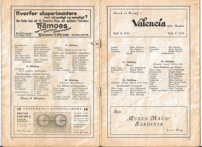 1930-31 - program for forestillingen "Jorden rundt i 80 Dage". ![]() ![]()