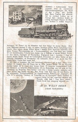 Programmet indeholder dels oplysninger om forestillingen. dels flere artikler og billeder. Artiklen af tyskeren Willy Herm "Den umoderne Jules Verne" antyder, at JV´s