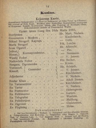 1883 d. 16. August 1883 med den 2. rollebesætning. I bladet nævnes