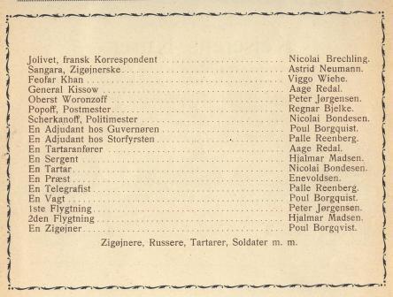 programmet med rollelisten ved genoptagelsen af stykket efter sommeren