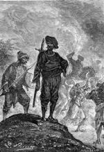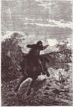 ![]() Fra Kim: I anden anledning har jeg søgt oplysninger om tegneren med signaturen "Th. J." - Th. Iversen, som lavede Verne-forsider for Jespersens forlag i starten af 1900 (han har lavet forsiden til August Birch: Zinkkisten, som jeg netop har genudgivet, og flere andre), og fandt denne side: Supplerende kan jeg fra Københavns Politis registerblade oplyse, at hans fulde navn var Thomas Christian Iversen, og at han var født i Svendborg 14. august 1878. Hans præcise dødsdato har jeg ikke, han forlader tilsyneladende København i 1912 og dukker ikke op igen - i hvert fald ikke i den periode, Registerbladene dækker (ca. til 1923). Han er registreret med titel litograf i 1898, derefter som tegner (1906, 1908). Det gik tilsyneladende lidt stærkt for ham i det første ti-år af 1900 - under overskriften "sladder" kan jeg nævne, at han i 1906 er gift med en Christine fra Haderslev, i 1907 vedkender sig faderskab til et barn med en Marie Petrine i Karlstrup syd for Roskilde, og i 1908 er gift med en Mary Ingrid i København ... Har tegnet illustrationer til de sidste 3 bind i Jespersens 12 binds udgave. Som for de øvrige bind er nogle af tegningerne nærmest kopier af de franske originaler, men Iversen frigør sig dog mere fra de franske end f.eks. Nørretranders. Kejserens Kurér 1907, omslag i farver og 5 s/h illustrationer. Omslaget genbruges i 1922, men ikke i 1936. Rejsen til Maanen 1909, omslag i farver og 5 s/h illustrationer. Omslaget genbruges i 1922 og 1933. Keraban Stivnakke 1910, omslag i farver og 5 s/h illustrationer. Omslaget genbruges i 1922. Eksempel, hvor Strogoff forhindrer piskningen af sin gamle mor i Kejserens