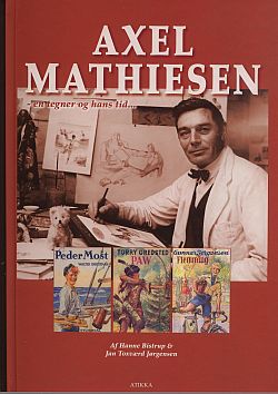 Et eksempel på de utallige omslag han leverer, her til Hasselbalchs tidlige Tarzanserie. Jan Jørgensen mener også at AM tegner forsiden til Jespersens VUH fra 1935, Bog om Axel Mathiesen. af Hanne Bistrup & Jan Toxværd Jørgensen. 320 sider, 299 kr. Forlaget Attika 2009. Hanne Bistrup er barnebarn af AM. ![]() Der er afbildning af "Jorden rundt i 80 Dage" fra Chr. Erichsen og billeder fra Branners serie. De sidste er forfatterne ikke særlig begejstrede for. Bogen er gennemillustreret med alle typer af illustrationer fra A.M.s lange virke, som gennemgås skiftevis tematisk og kronologisk. En meget flot bog til en rimelig pris. ![]() ![]() ![]() |
