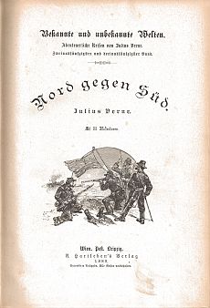 Julius Verne 41. Band" 51 illustrationer (orig. franske) ![]() "Nord gegen Süd" del 1-2. . A. Hartleben´s Verlag. Wien. Pest. Leipzig. 1889. Serien "Bekannte und unbekannte Welten" bd. 52-53. 413 s. Brun komponeret shirting med tryk i sort, rødt og guld.. ![]() "Die Propeller-Insel" del 1-2. A. Hartleben´s Verlag Wien. Pest. Leipzig. 1897. Serien