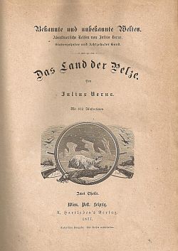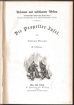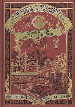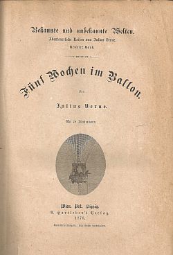 udtyndes til en linje i den øverste del. De store Hartleben. "Zwanzigtausend Meilen unter dem Meer" del 1-2 . A. Hartleben´s Verlag, Wien. Pest. Leipzig. U. år. (ca. 1877) Serien "Bekannte und unbekannte Welten" bd. 4-5. 3. oplag. 460 s. + 2 s. indholdsfort. Priv. halvfablea.. ![]() "Fünf Wochen im Ballon" 1876. Serien "Bekannte und ubekannte Welten. Abenteurliche Reisen von Jules