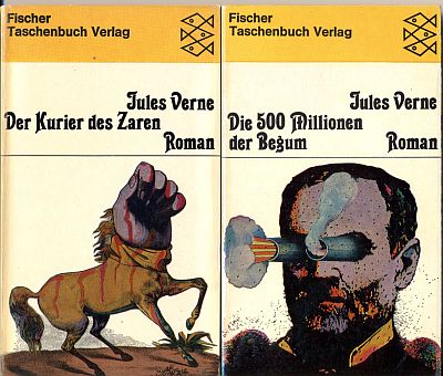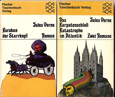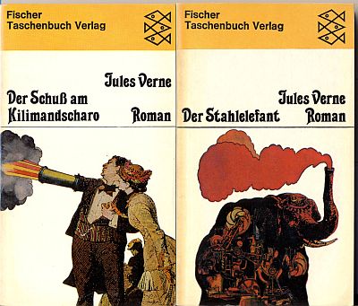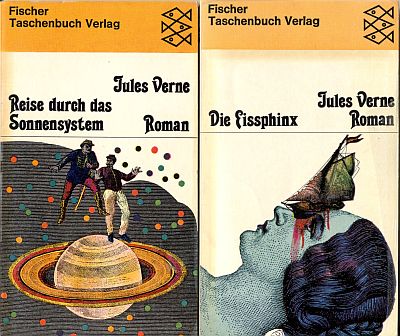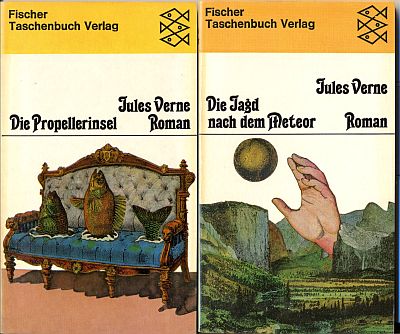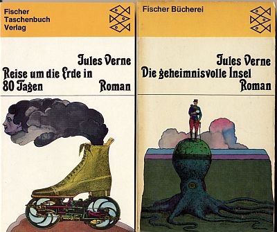 Helshirtingsindbinding med illustreret smudsomslag. ![]() Fischer Taschenbuch Verlag. En næsten komplet samling (18 af ialt 20) af tyske paperbacks udsendt af Fischer Taschenbuch Verlag i adskillige oplag i 60'erne til 80'erne og i 100.000-vis af eksemplarer. De indeholder en del af de originale illustrationer; Frelserkirkens tårn er således medtaget. De er endvidere forsynet med nogle pudsige surrealistiske omslagstegninger af Heinz Edelmann. ![]() ![]() ![]() ![]() ![]() Von der Erde zum Mond" i den første serie med nummeret