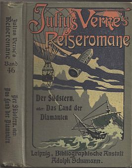 "Mistress Branican 1-2" u. år. Serien: "Julius Verne´s Reiseromane Band 60-61", 1 iil. i hvert bind. "Der Südstern, oder: Das Land der Diamanten". .Disse er udaterede, men iflg. Andreas Fehrmann er de udsendt 1903-06. . ![]() . Serien "Julius Verne´s Reiseromane" Band 46. Bibliographische Anstalt Adolph Schumann, Leipzig. Men