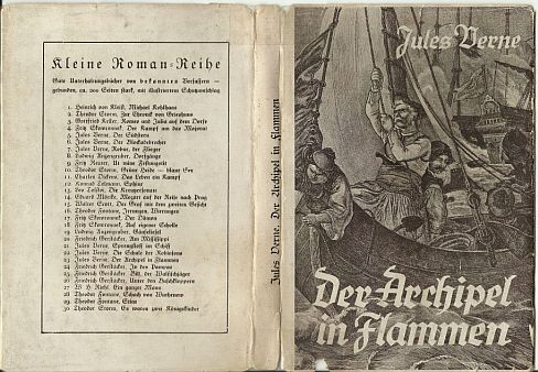 farvestrålende - smudsomslag ! (Bag titlen gemmer sig romanen om "Chancellor"s forlis). .Der Archipel in Flammen. .![]() .