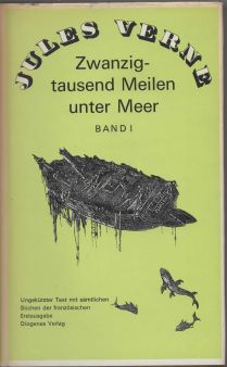 "Von der Erde zum Mond", Diogenes Verlag AG, Zürich. 1966. 41 illustrationer og 2 kort - de originale franske.Oversat af William Matheson. 302 s. + 1 s. indholdsfortegnelse. Tryk: Suddeutsche Verlagsanstalt und Druckerei, Ludwigsburg. Grågul helshirting med smudsomslag. "Zwanzig-tausend Meilen unter Meer" I-II. Diogenes Verlag AG, Zürich. 1966. 51 illustrationer og 1 kort + 60 illustrationer og 1 kort -