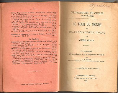 alle 3 titler er nævnt. Det betyder, at alle 3 har kunnet købes i 1902. ![]() "Le Tour du Monde en 80 Jours" Velhagen & Klasing, Bielefeld und