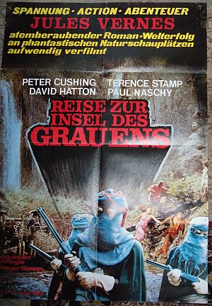 Instruktøren er Juan Piquet Simón og i hovedrollerne ses Peter Cushing, Terence Stamp, David Hatton og Paul Naschy. Plakat for filmen, fundet i Danmark. ![]() Det er "Reise zur insel des grauens". Plakaten er trykt i 1982. Bag ligger